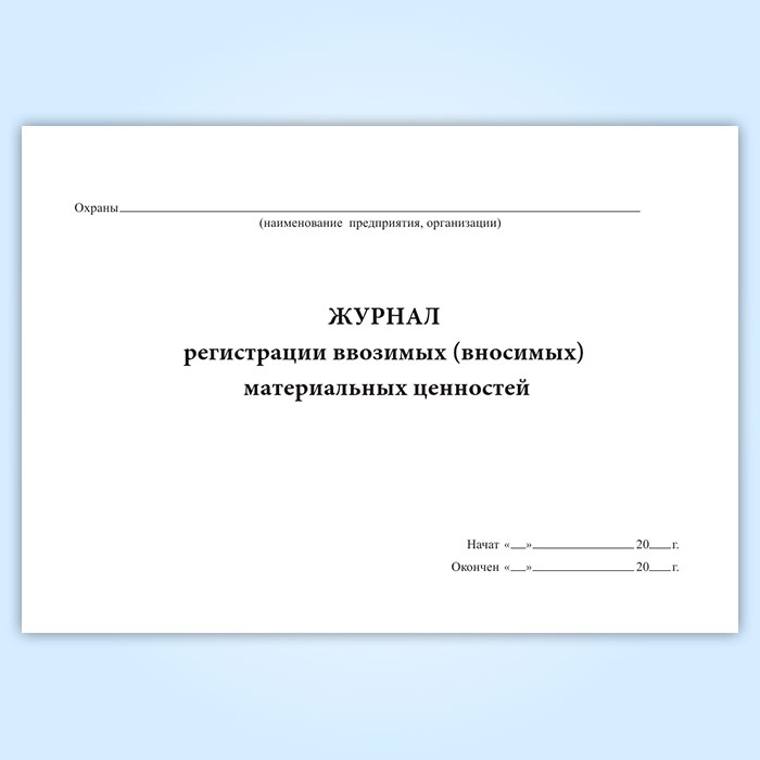 Журнал регистрации ввозимых (вносимых) материальных ценностей в Великом Новгороде купить