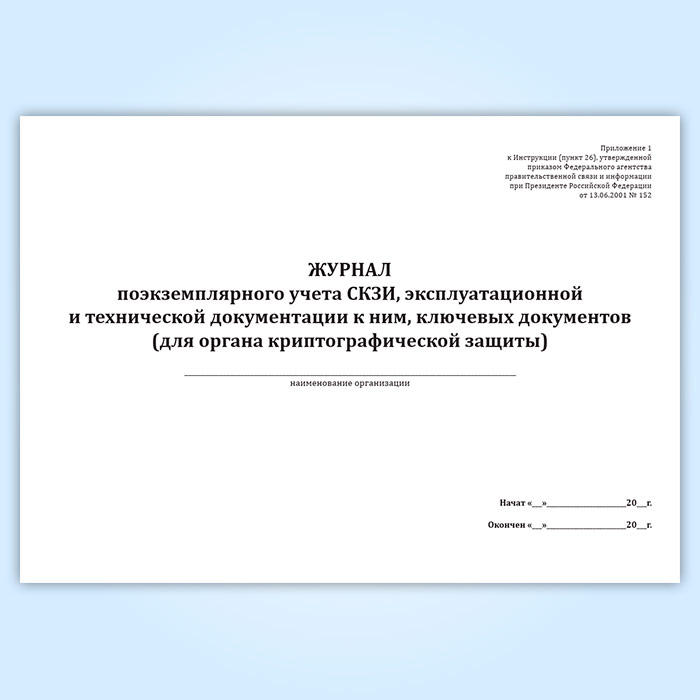 Журнал поэкземплярного учета СКЗИ, эксплуатационной и технической документации к ним, ключевых документов (для органа криптографической защиты) в Великом Новгороде купить