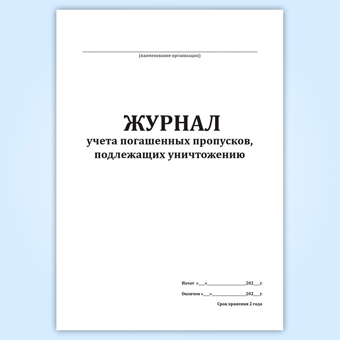Журнал учета погашенных пропусков, подлежащих уничтожению в Великом Новгороде купить