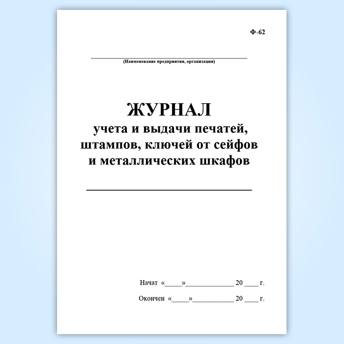 Журнал учета и выдачи печатей, штампов, ключей от сейфов и металлических шкафов (Ф-62) в Великом Новгороде купить
