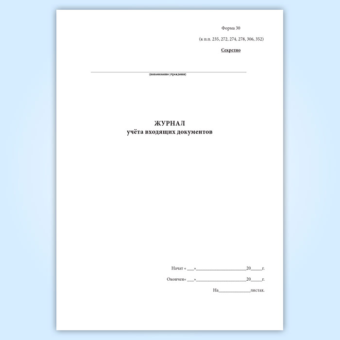 Журнал учета входящих документов (форма № 30) в Великом Новгороде купить