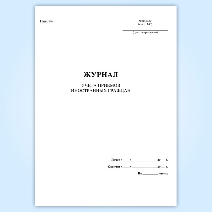 Журнал учета приемов иностранных граждан (форма 20) в Великом Новгороде купить
