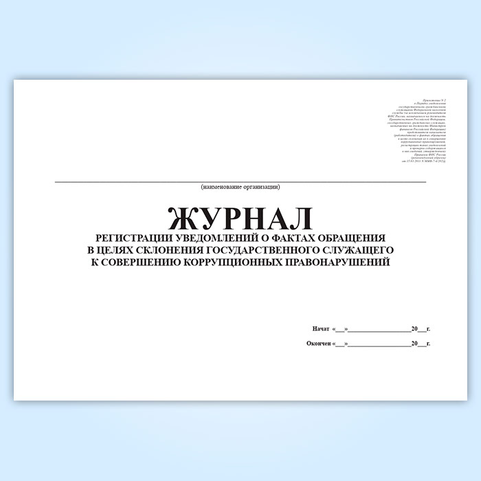 Журнал регистрации уведомлений о фактах обращения в целях склонения государственного служащего к совершению коррупционных правонарушений в Великом Новгороде купить