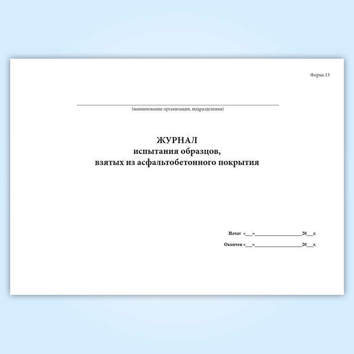 Журнал испытания образцов, взятых из асфальтобетонного покрытия (форма 13) в Великом Новгороде купить