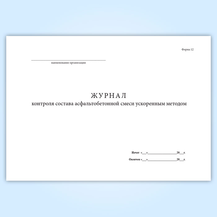 Журнал контроля состава асфальтобетонной смеси ускоренным методом (форма 12) в Великом Новгороде купить