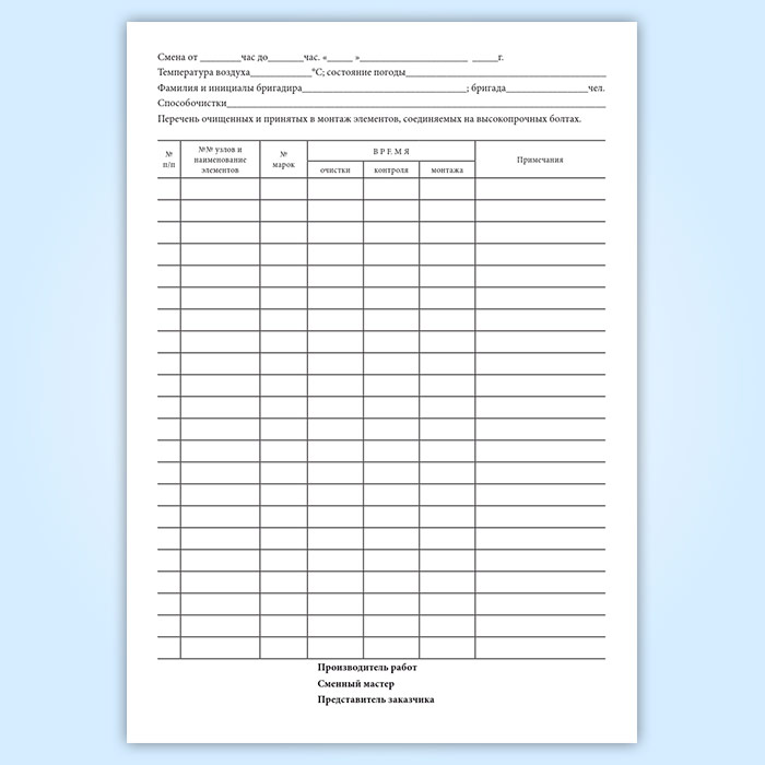 Журнал контроля качества очистки элементов стальных мостовых конструкций с соединениями на высокопрочных болтах в Великом Новгороде купить