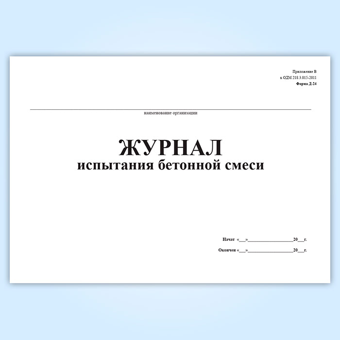 Журнал испытания бетонной смеси (форма № Д-24) в Великом Новгороде купить