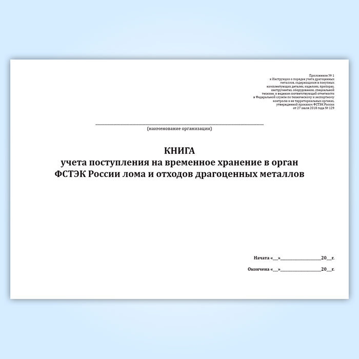 Книга учета поступления на временное хранение в орган ФСТЭК России лома и отходов драгоценных металлов в Великом Новгороде купить