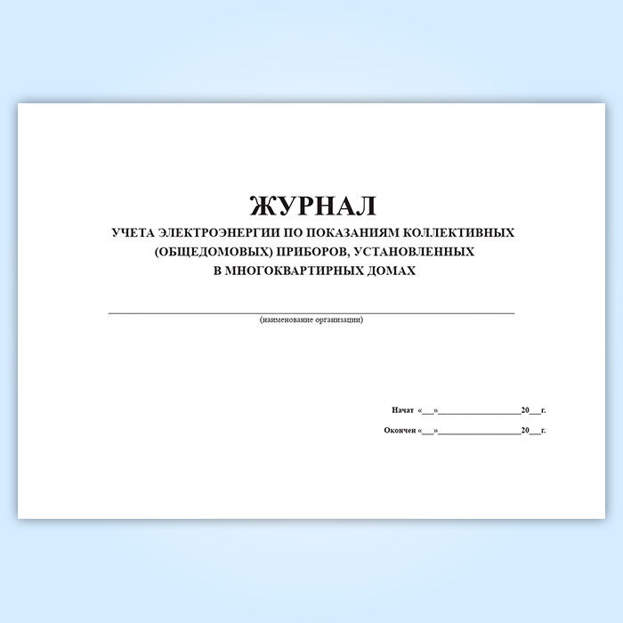 Журнал учета электроэнергии по показаниям коллективных (общедомовых) приборов, установленных в многоквартирных домах в Великом Новгороде купить