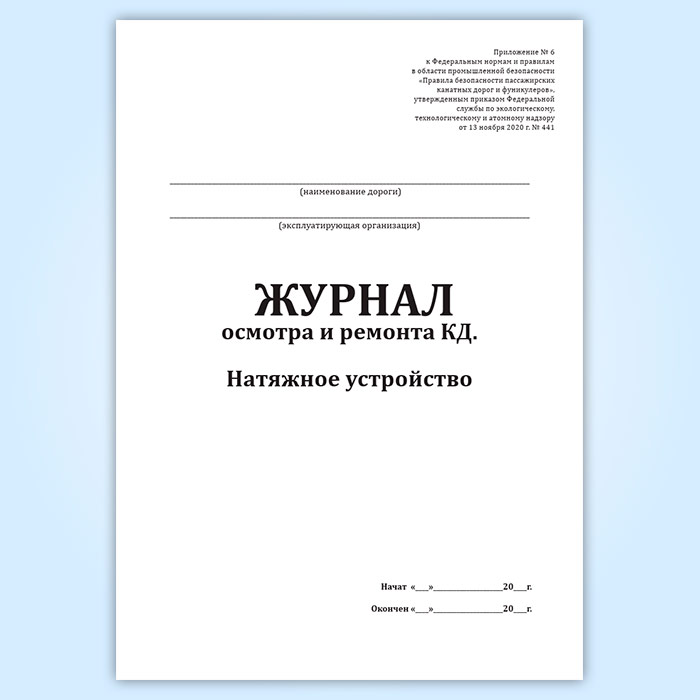 Журнал осмотра и ремонта канатной дороги. Натяжное устройство (форма № 5) в Великом Новгороде купить