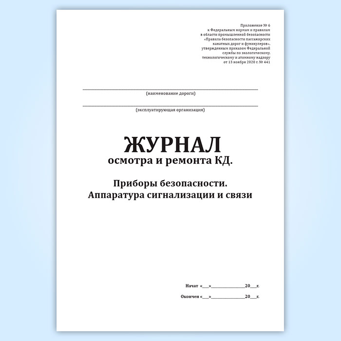 Журнал осмотра и ремонта канатной дороги. Приборы безопасности. Аппаратура сигнализации и связи (форма № 9) в Великом Новгороде купить
