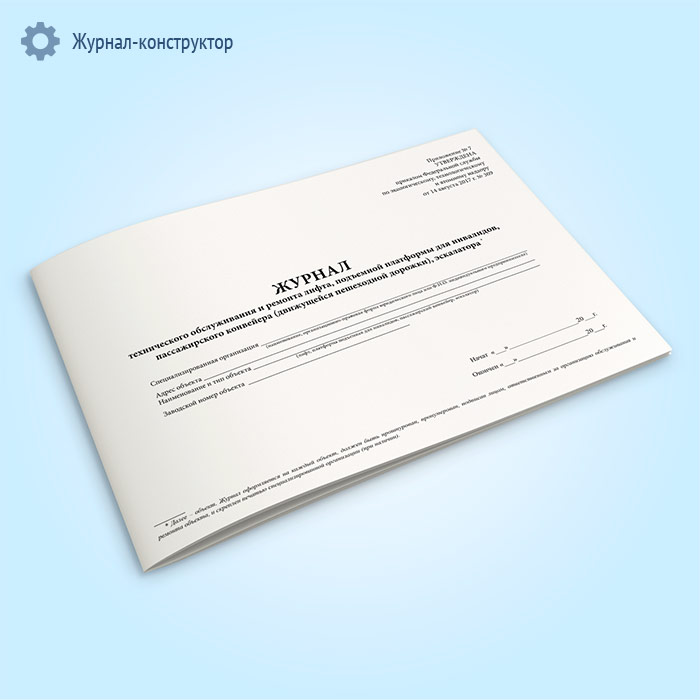Журнал технического обслуживания и ремонта лифта, подъемной платформы для инвалидов, пассажирского конвейера (движущейся пешеходной дорожки), эскалатора в Великом Новгороде купить