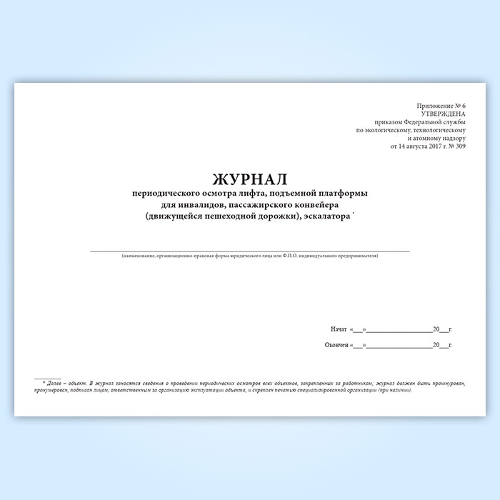 Журнал периодического осмотра лифта, подъемной платформы для инвалидов, пассажирского конвейера (движущейся пешеходной дорожки), эскалатора в Великом Новгороде купить