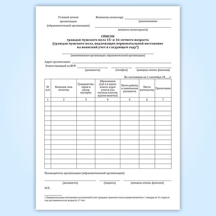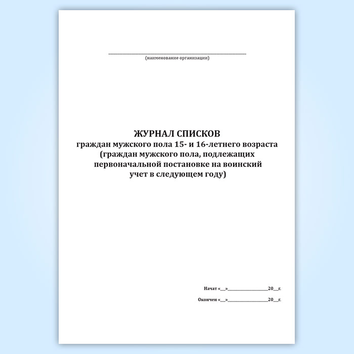 Журнал списков граждан мужского пола 15- и 16-летнего возраста (граждан мужского пола, подлежащих первоначальной постановке на воинский учет в следующем году) в Великом Новгороде купить