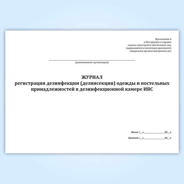 Журнал регистрации дезинфекции (дезинсекции) одежды и постельных принадлежностей в дезинфекционной камере ИВС в Великом Новгороде купить