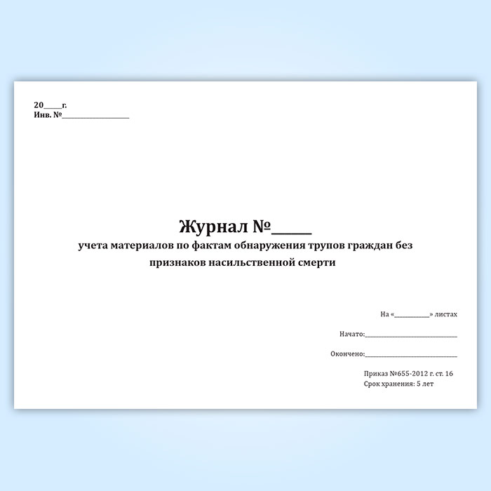 Журнал учета материалов по фактам обнаружения трупов граждан без признаков насильственной смерти в Великом Новгороде купить