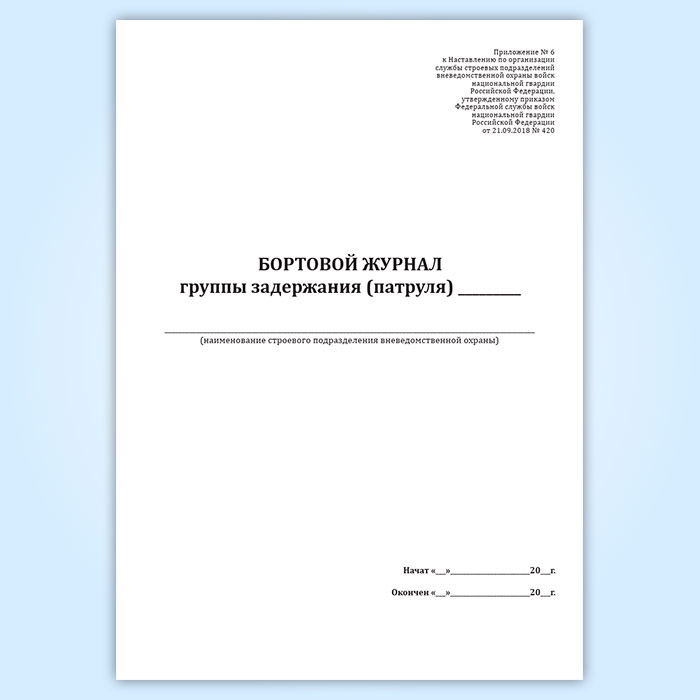 Бортовой журнал группы задержания (патруля) в Великом Новгороде купить