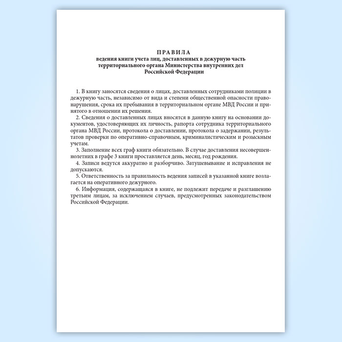Книга учета лиц, доставленных в дежурную часть территориального органа МВД РФ в Великом Новгороде купить
