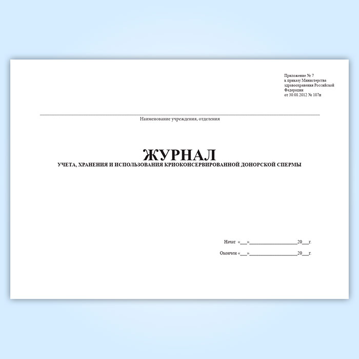Журнал учета, хранения и использования криоконсервированной донорской спермы в Великом Новгороде купить