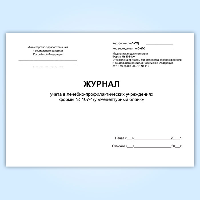 Журнал учета в лечебно-профилактических учреждениях рецептурных бланков формы № 107-1/у (форма № 306-1/у) в Великом Новгороде купить