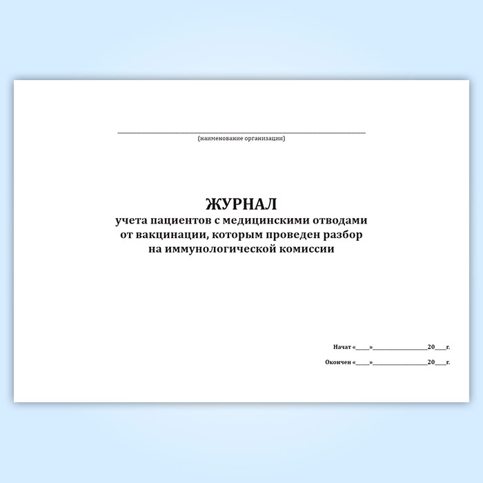 Журнал учета пациентов с медицинскими отводами от вакцинации, которым проведен разбор на иммунологической комиссии в Великом Новгороде купить