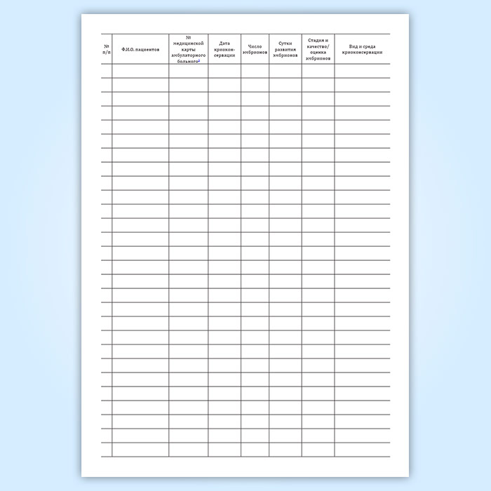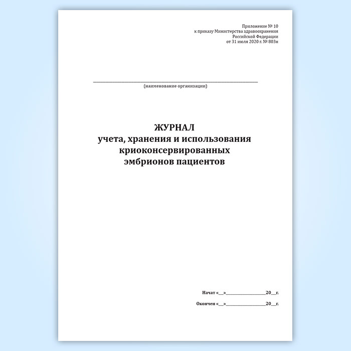 Журнал учета, хранения и использования криоконсервированных эмбрионов пациентов в Великом Новгороде купить