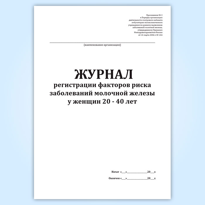 Журнал регистрации факторов риска заболеваний молочной железы у женщин 20-40 лет в Великом Новгороде купить