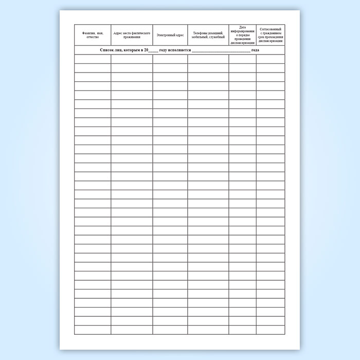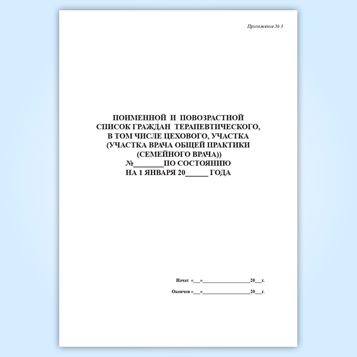 Поименный и повозрастной список граждан терапевтического, в том числе цехового, участка (участка врача общей практики (семейного врача)) в Великом Новгороде купить
