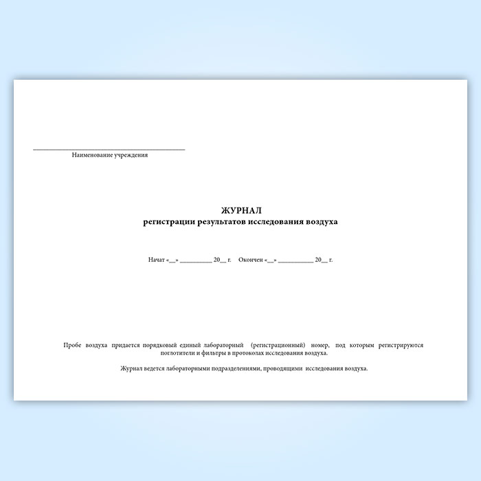 Журнал регистрации результатов исследования воздуха (форма 328-у) в Великом Новгороде купить