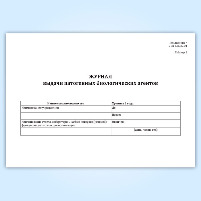 Журнал выдачи патогенных биологических агентов (СанПиН 3.3686-21) в Великом Новгороде купить
