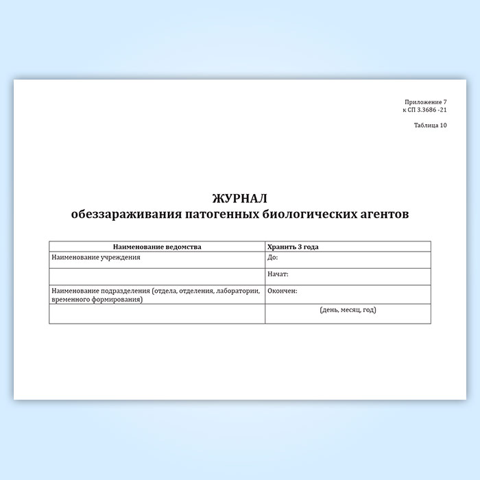 Журнал обеззараживания патогенных биологических агентов (СанПиН 3.3686-21) в Великом Новгороде купить