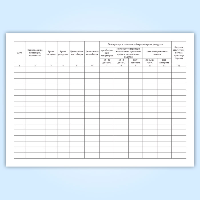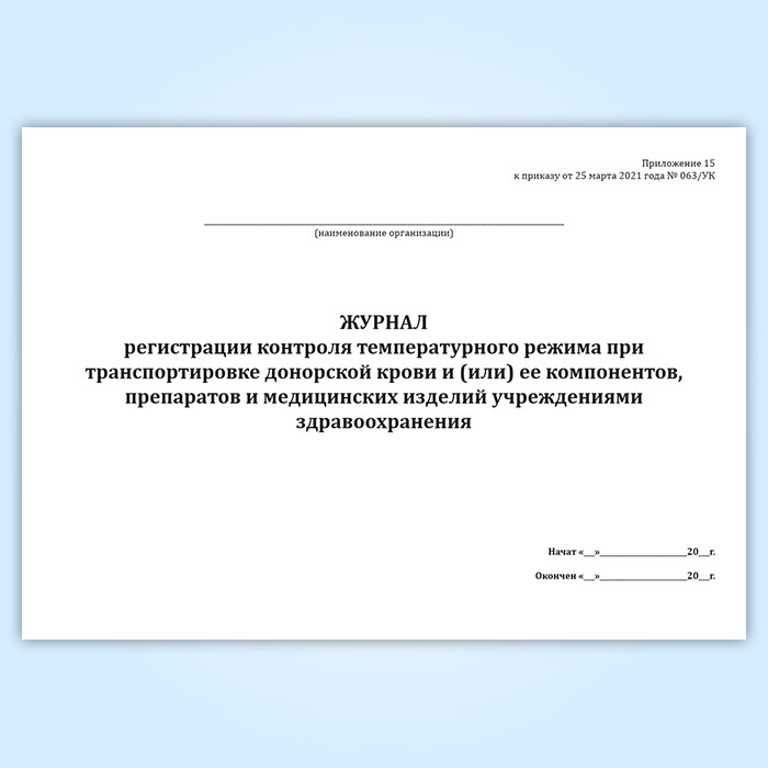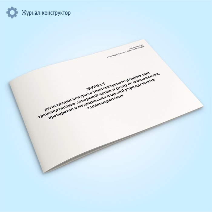 Журнал регистрации контроля температурного режима при транспортировке донорской крови и (или) ее компонентов, препаратов и медицинских изделий учреждениями здравоохранения в Великом Новгороде купить