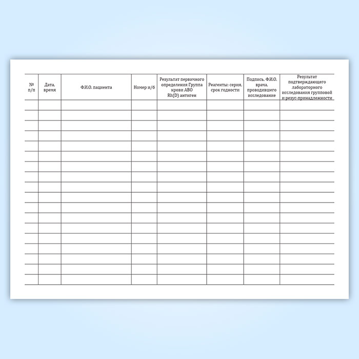Журнал регистрации первичного определения группы крови в Великом Новгороде купить