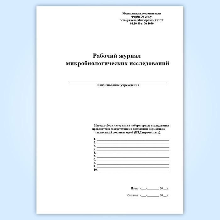 Рабочий журнал микробиологических исследований (форма 253/у) в Великом Новгороде купить