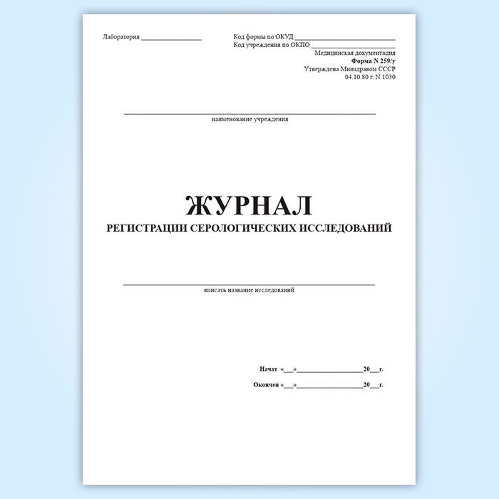 Журнал регистрации серологических исследований (форма 259/у) в Великом Новгороде купить