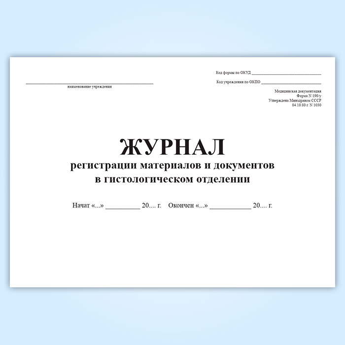 Журнал регистрации материалов и документов в гистологическом отделении (форма 190/у) в Великом Новгороде купить