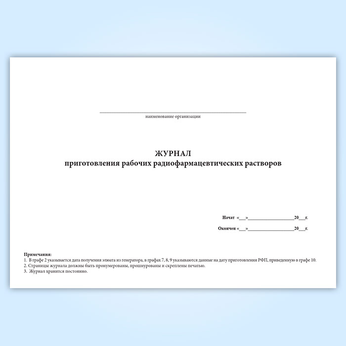 Журнал приготовления рабочих радиофармацевтических растворов в Великом Новгороде купить