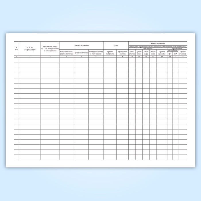 Журнал учета серологических исследований на паразитарные заболевания в Великом Новгороде купить
