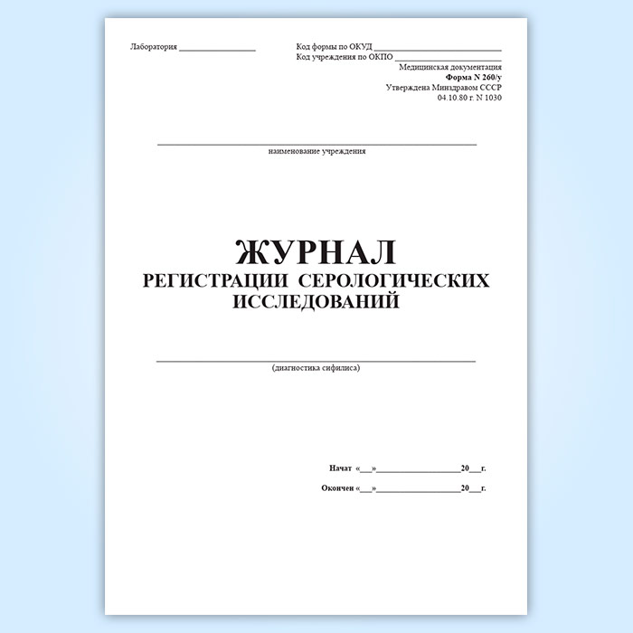 Журнал регистрации серологических исследований (диагностика сифилиса) (форма 260/у) в Великом Новгороде купить