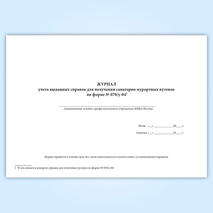 Журнал учета выданных справок для получения санаторно-курортных путевок (форма № 070/у-04) в Великом Новгороде купить