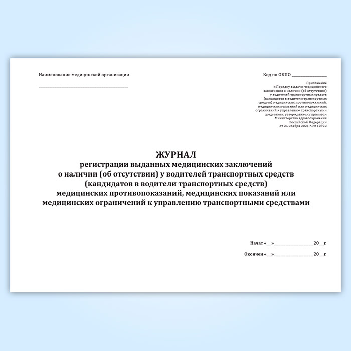 Журнал регистрации выданных медицинских заключений о наличии (об отсутствии) у водителей транспортных средств (кандидатов в водители транспортных средств) медицинских противопоказаний, медицинских показаний или медицинских ограничений к управлению транспортными средствами в Великом Новгороде купить