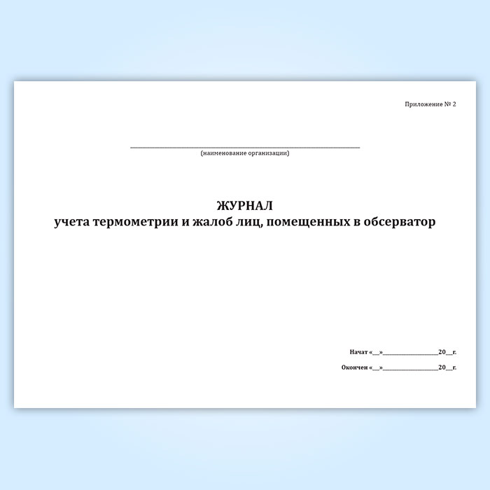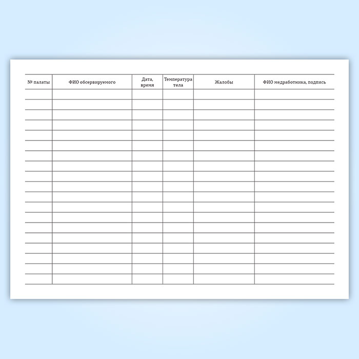 Журнал учета термометрии и жалоб лиц, помещенных в обсерватор в Великом Новгороде купить