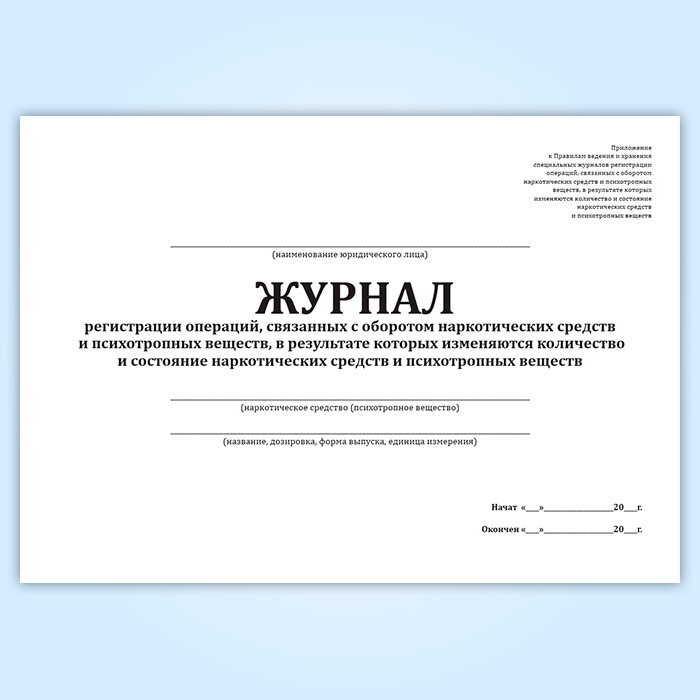 Журнал регистрации операций, связанных с оборотом наркотических средств и психотропных веществ, в результате которых изменяются количество и состояние наркотических средств и психотропных веществ в Великом Новгороде купить