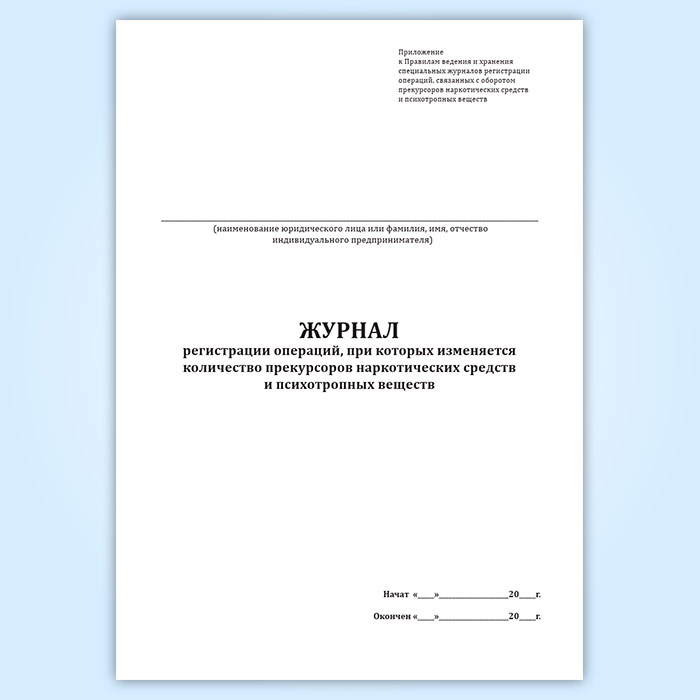 Журнал регистрации операций, при которых изменяется количество прекурсоров наркотических средств и психотропных веществ в Великом Новгороде купить