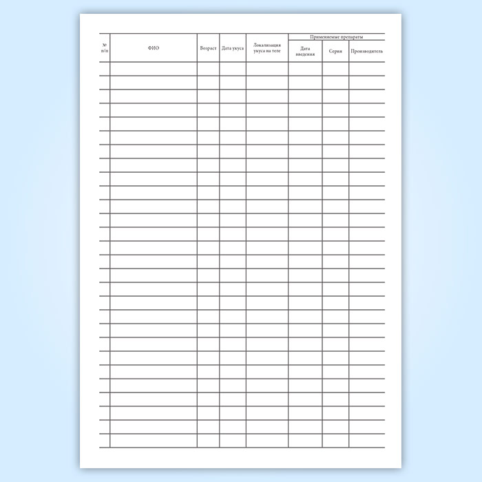 Журнал учета покусов людей животными (форма А002) в Великом Новгороде купить