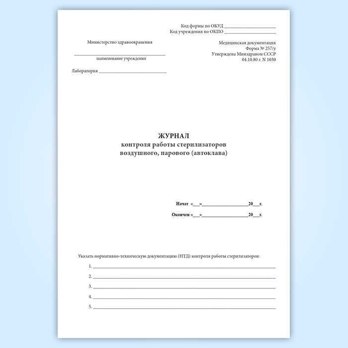 Журнал контроля работы стерилизаторов воздушного, парового (автоклава) (форма 257/у) в Великом Новгороде купить