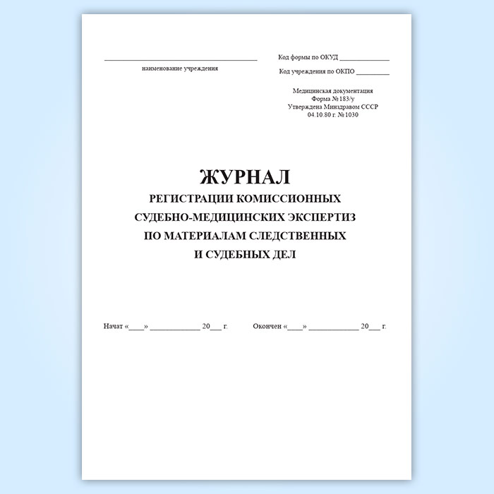 Журнал регистрации комиссионных судебно-медицинских экспертиз по материалам следственных и судебных дел (форма 183/у) в Великом Новгороде купить