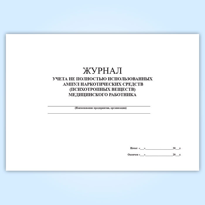 Журнал учета не полностью использованных ампул наркотических средств (психотропных веществ) медицинского работника в Великом Новгороде купить