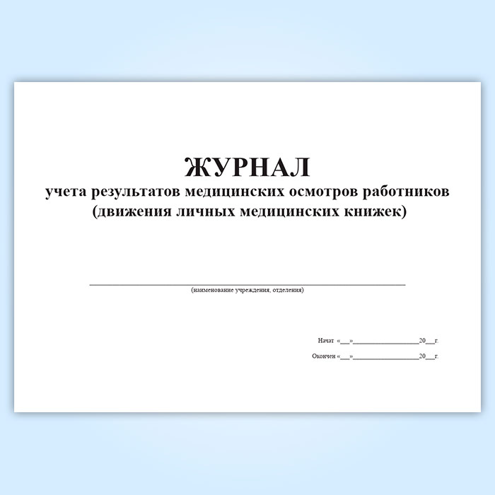 Журнал учета результатов медицинских осмотров работников (движения личных медицинских книжек) в Великом Новгороде купить