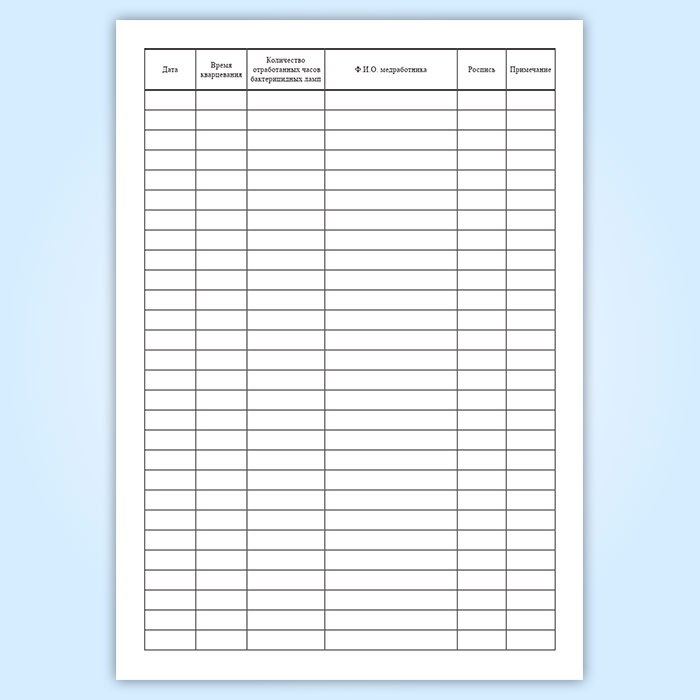 Журнал регистрации и контроля работы бактерицидной лампы в Великом Новгороде купить